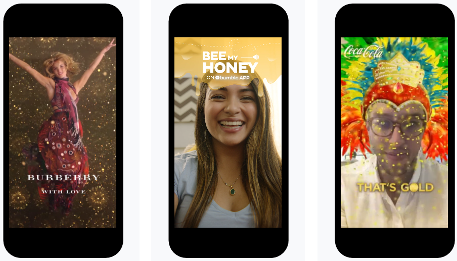 Snapchat is gratis te gebruiken voor organisaties en merken. Adverteren op Snapchat is op dit moment alleen mogelijk in de Verenigde Staten*. De verwachting is dat deze mogelijkheden binnenkort ook internationaal ingezet worden. In de afbeelding hieronder zie je een voorbeeld van (van links naar rechts) Snap ads, Sponsored Geofilters en Sponsored Lenses.
