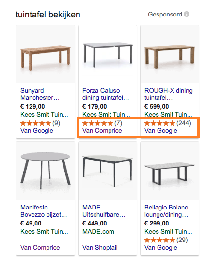 Voorbeeld advertentie binnen Google Shopping