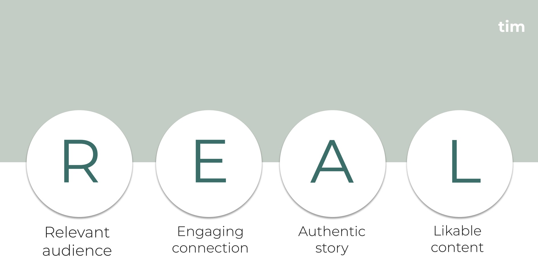 Waar we in 2016-2017 in de piek zaten en iedereen riep dat je iets moet doen met influencer marketing, begaven we ons in 2018 in de desillusie dip; de resultaten vielen tegen en er was sprake van een echte dip, tot ware schandalen aan toe (denk aan het Fyre Festival en de veelbekeken Rambam uitzending). Maar, zo stelt Doris, we zitten nu in de slope of enlightenment. Het is taak aan de slimme marketeers om kritisch te durven kijken naar influencer marketing en door te ontwikkelen; Uiteindelijk bereiken we in 2021 het plateau van productiviteit en gaat iedereen influencer marketing gaat inzetten. Doris stelt dat om dit plateau te bereiken onder andere 1 ding belangrijk is; focus op de REALness van de content die de influencers maken. REAL staat voor: