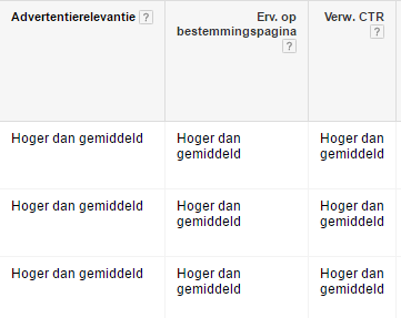 Daarnaast zijn er nog eens vier statuskolommen toegevoegd op basis van historie, namelijk: historische kwaliteitsscore, ervaring op bestemmingspagina (historie), advertentierelevantie (historie) en verwachte klikfrequentie (historie). Hierdoor krijg je als adverteerder betere inzichten in de ontwikkeling in de loop der tijd.