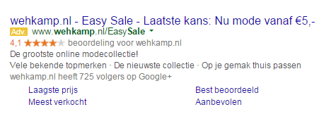 Advertentieteksten, sitelinks en highlight extensies kunnen binnen enkele minuten worden aangepast (in tegenstelling tot het organische resultaat). Hierdoor kunnen tijdelijke aanbiedingen snel worden gecommuniceerd. Denk bijvoorbeeld aan het Prijzencircus bij de V&D of de Drie Dwaze Dagen van de Bijenkorf. Maar ook de sale periode bij een retailer. Zie bijvoorbeeld wehkamp.nl: