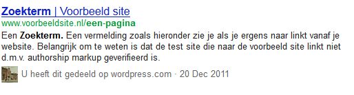 Toen ik ingelogd was met het Google+ profiel merkte ik iets op in de zoekresultaten wat ik niet had verwacht. Hieronder een voorbeeld ervan zonder de link van de testsite prijs te geven.
