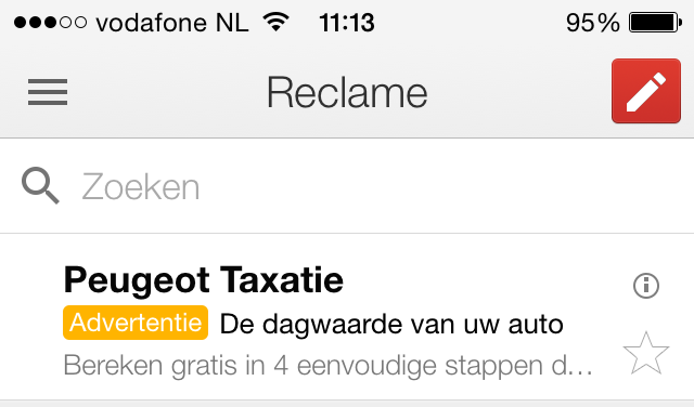 Op mobiele apparaten is deze advertentie ook via de reclame tab te bereiken en ziet dit er als volgt uit:
