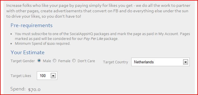 Via de website in bovenstaande afbeelding kunnen bedrijven en personen likes kopen. Er zijn alleen twee voorwaarden aan verbonden: