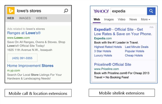 Naast de introductie van Product Ads komt Bing ook met meer mogelijkheden om te adverteren op mobiele apparaten. Het is mogelijk om in de lokale resultaten te verschijnen met de locatie van een bedrijf, telefoonnummer en sitelinks. Deze toevoeging kan leiden tot 30% hogere CTR. Op deze manier kan er meer rendement worden behaald uit mobiele gebruikers.