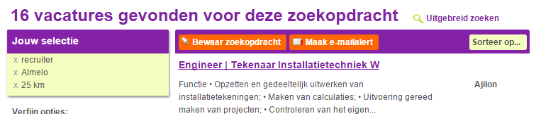 En kijk bovendien goed of je filters logisch zijn. Mooi voorbeeld is bijvoorbeeld een filter waarbij je kunt aangeven welke maximale reisafstand wenselijk is. Maak die stapjes niet te groot. Van 50 in n keer naar 100 kilometer enkele reis is bijvoorbeeld redelijk fors. Zelfde principe geldt voor wat betreft het filteren op een gewenst salaris.