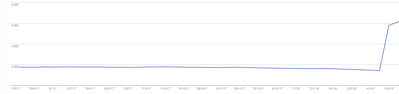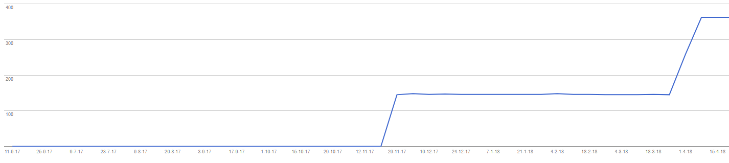 Hieronder een screenshot van het aantal gendexeerde paginas in Google van een website die getroffen is door deze bug. Zoals je kan zien zijn het aantal paginas in de index verdubbeld of zelfs verviervoudigd.