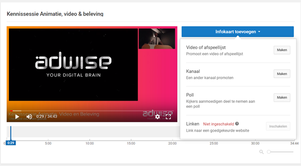 Met de kaarten functionaliteit in YouTube kun je je video's interactiever maken. Deze functionaliteit maakt het namelijk mogelijk om de kijker door te verwijzen naar een pagina of aangepaste afbeelding. Daarnaast is het ook mogelijk om met de kaarten titels en CTA’s weergeven.