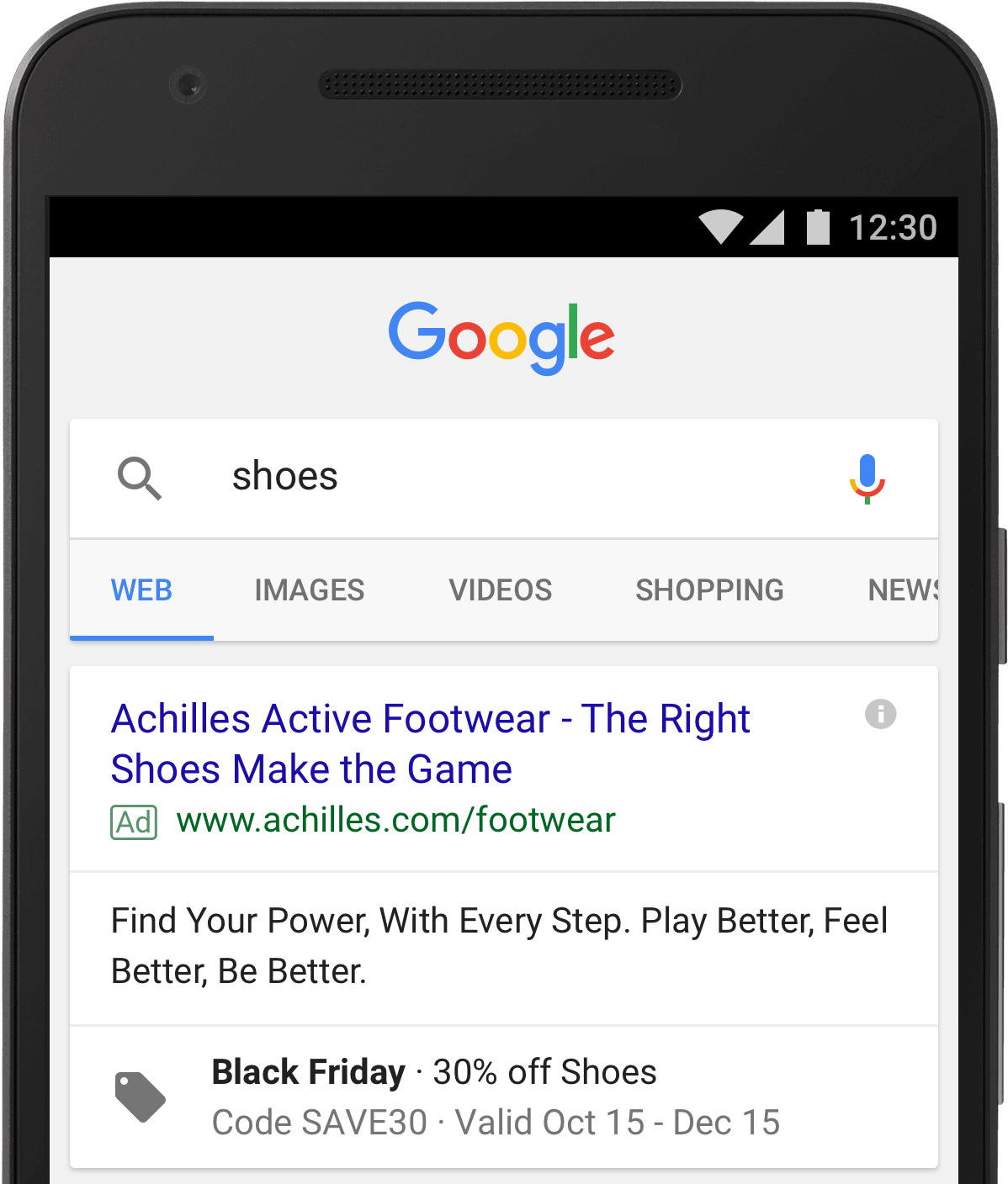 Maak daarbij ook gebruik van de Black Friday Promotion Extensions, een uitbreiding op je search ads waar je extra aandacht kunt geven aan je deal.