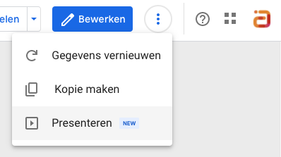 Sinds kort beschikt Data Studio - de gratis dashboarding tool van Google - over een presentatiemodus. Hiermee is het mogelijk om dashboards op volledig scherm te presenteren, soortgelijk aan Google Slides. Zo kun je ervoor kiezen om automatisch te wisselen tussen tabbladen. Handig wanneer je bijvoorbeeld een dashboard met 10 tabbladen elke 30 seconden wilt laten rouleren. Je vindt de nieuwe feature bij de opties rechtsboven.