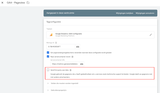 Het was al mogelijk om je eigen “1st party data” aan te leveren via de Google Ads conversietag voor Google Tag Manager. Dit hoort bij de optie “Enhanced Conversions” van Google Ads. We zien nu echter ook in de GA4-tag de mogelijkheid opduiken om 1st party gegevens mee te sturen met requests naar Google Analytics.