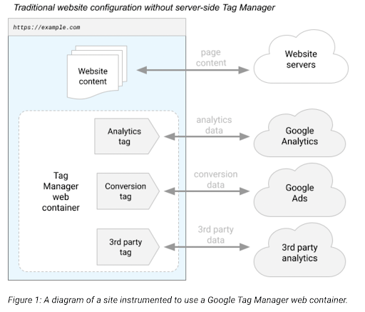 Onlangs heeft Google Analytics een heldere schematische weergave gecreëerd waarbij Server Side tagging nog eens wordt uitgelegd. Hiermee wordt uitgelegd dat de server kan draaien op je eigen Google Cloud Platform-project. Hierbij kan je zelf volledig de controle over hoe die gegevens worden verwerkt, en waar de data naar toe wordt gestuurd.