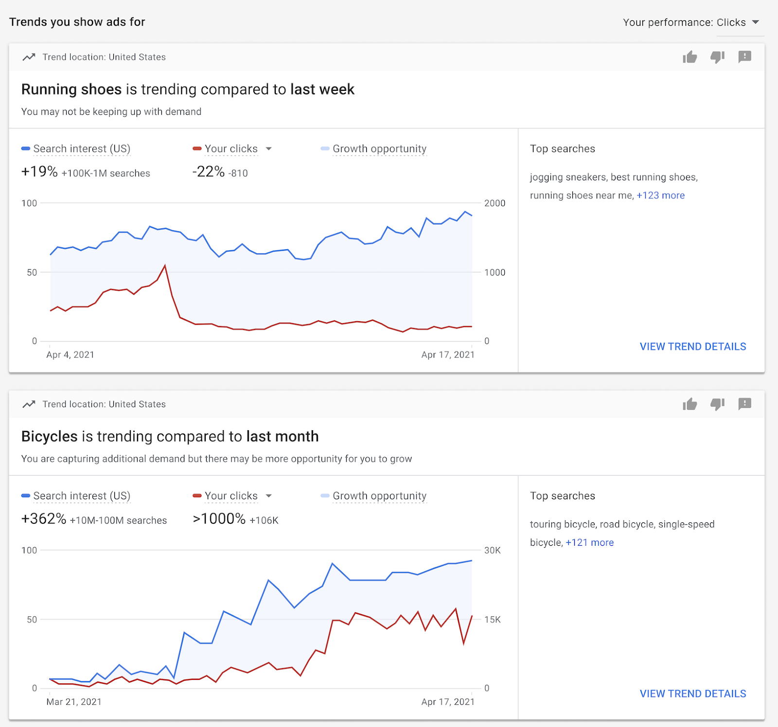 Wellicht heb je het al sporadisch langs zien komen, maar vanaf deze maand heeft Google haar 'Insights' functionaliteit wereldwijd uitgerold. De online wereld verandert snel en zo ook de online vraag naar producten en diensten. Om hier als marketeer nog beter op in te kunnen spelen vind je nu binnen jouw Google Ads account de inzichten optie. Deze functionaliteit biedt nieuwe inzichten in hoe een bepaalde markt zich heeft ontwikkeld ten opzichte van een vorige periode. Deze trends zijn speciaal gericht op de markt waarin jij actief bent.