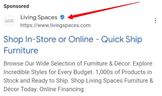 Verficatiebadges worden over het algemeen gezien als een teken van vertrouwen. Deze kleine aanvulling zou er voor kunnen zorgen dat gecertificeerde partijen hogere CTR’s kunnen zien in vergelijking met niet gecertificeerde adverteerders. Zodra je op de badge klikt, word je naar een informatiepagina van de adverteerder gestuurd.