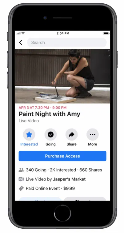 Facebook heeft in Nederland betaalde online evenementen gelanceerd. Met deze nieuwe functie is het voor bedrijven mogelijk om inkomsten te genereren via een online live event. Facebook lanceert deze events nu het opmerkt dat gebruikers behoefte hebben aan online interactie en live video. Gebruikers die een betaald online evenement willen bijwonen, betalen eenmalig voor hun toegang. Bedrijven die een event willen organiseren, kunnen dat vooralsnog alleen doen vanaf een computer.