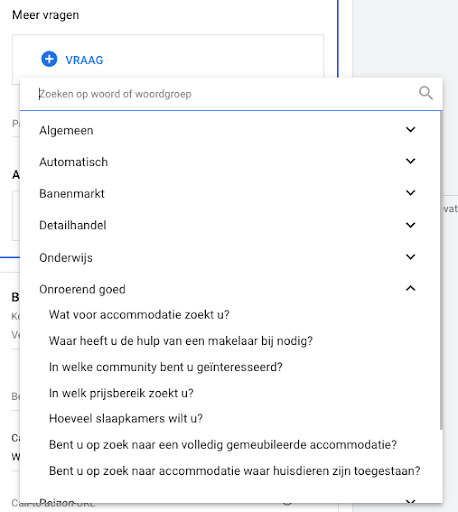 Verder heeft Google Ads het aantal velden voor contactgegevens uitgebreid en kan er gekozen worden uit standaardvragen per branche.