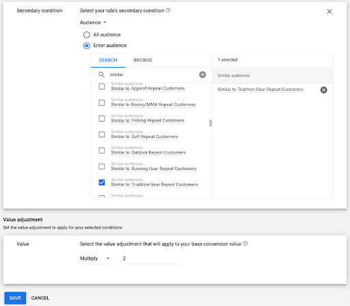 Niet alle conversies zijn evenveel waard voor jouw organisatie. Een bepaalde locatie of doelgroep kan bijvoorbeeld meer lifetime-value hebben dan andere klanten. Heb je een bepaalde doelgroep die voor jou meer waard is? Dan kun je vanaf nu regels toevoegen op jouw conversiewaarde. De door jou ingesteld regels worden vervolgens door de biedstrategieën ‘doel-ROAS’ en ‘conversiewaarde maximaliseren’ gebruikt om biedingen te optimaliseren.