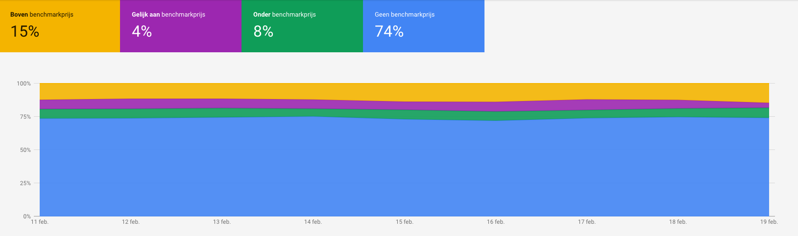 Met de prijsconcurrentievermogen feature kun je als adverteerder zien hoe je prijzen zich verhouden tot andere verkopers met dezelfde producten deelnemen aan Google Shopping veilingen.