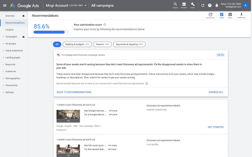 Naast het beschikbaar maken van de aanbevelingen, gaat Google ook een Optiscore tonen voor Discovery campagnes.