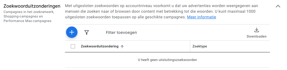 Om ongewenste vertoningen of klikken van bepaalde zoektermen te voorkomen is het nu mogelijk om zoektermen op account niveau uit te sluiten.