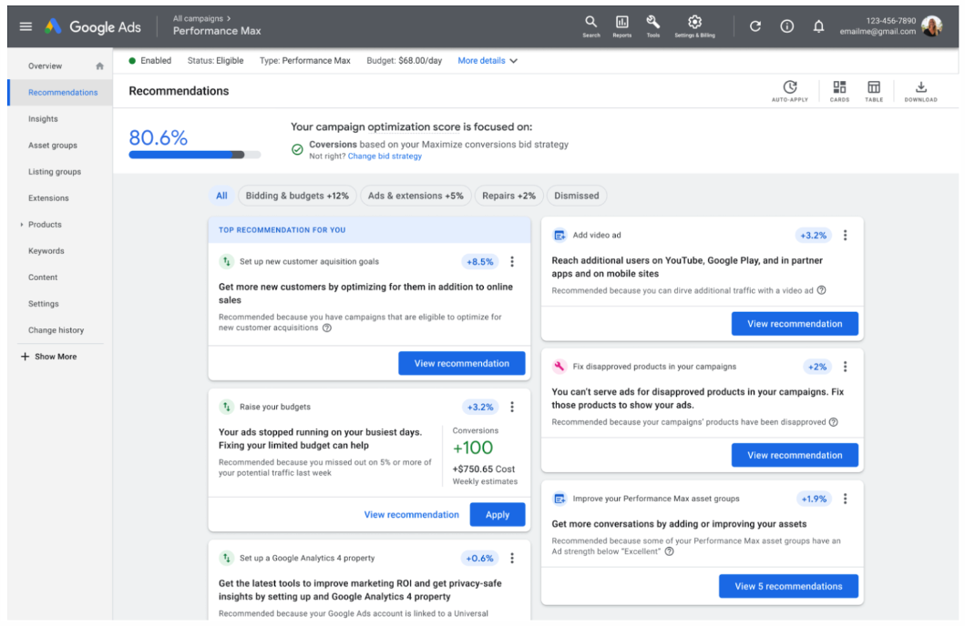 Voor veel adverteerders zal het begrip ‘Optiscore’ bekend voorkomen. De score die voortvloeit uit de account aanbevelingen bepalen deze. Voor onder andere search en shopping bestaat deze ‘Optiscore’ al een tijdje, echter bij Performance Max ontbrak hij vooralsnog. Daar komt, aldus Google, nu verandering in. Deze aanbevelingen worden op dit moment globaal geïntroduceerd.