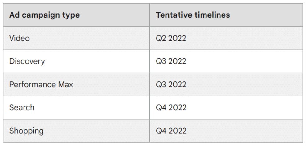 Ontwikkelaars die API's gebruiken om Google Ad-campagnes te beheren en erover te rapporteren, kunnen gemakkelijker wijzigingen aanbrengen, campagnetypen migreren en budgetten, middelen en instellingen behouden. Verdere updates bieden ook meer functionaliteitsopties met betrekking tot het gebruik van bedrijfsprofielen als bestemmingspagina's en advertentieplanningen voor lokale services.