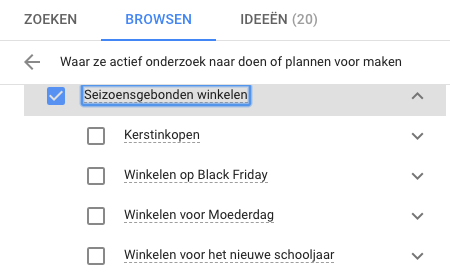 Google Ads heeft nieuwe in-market audiences uitgerold gericht op seizoensgebonden momenten. De seizoensgebonden momenten zijn ingedeeld in de volgende categorieën: