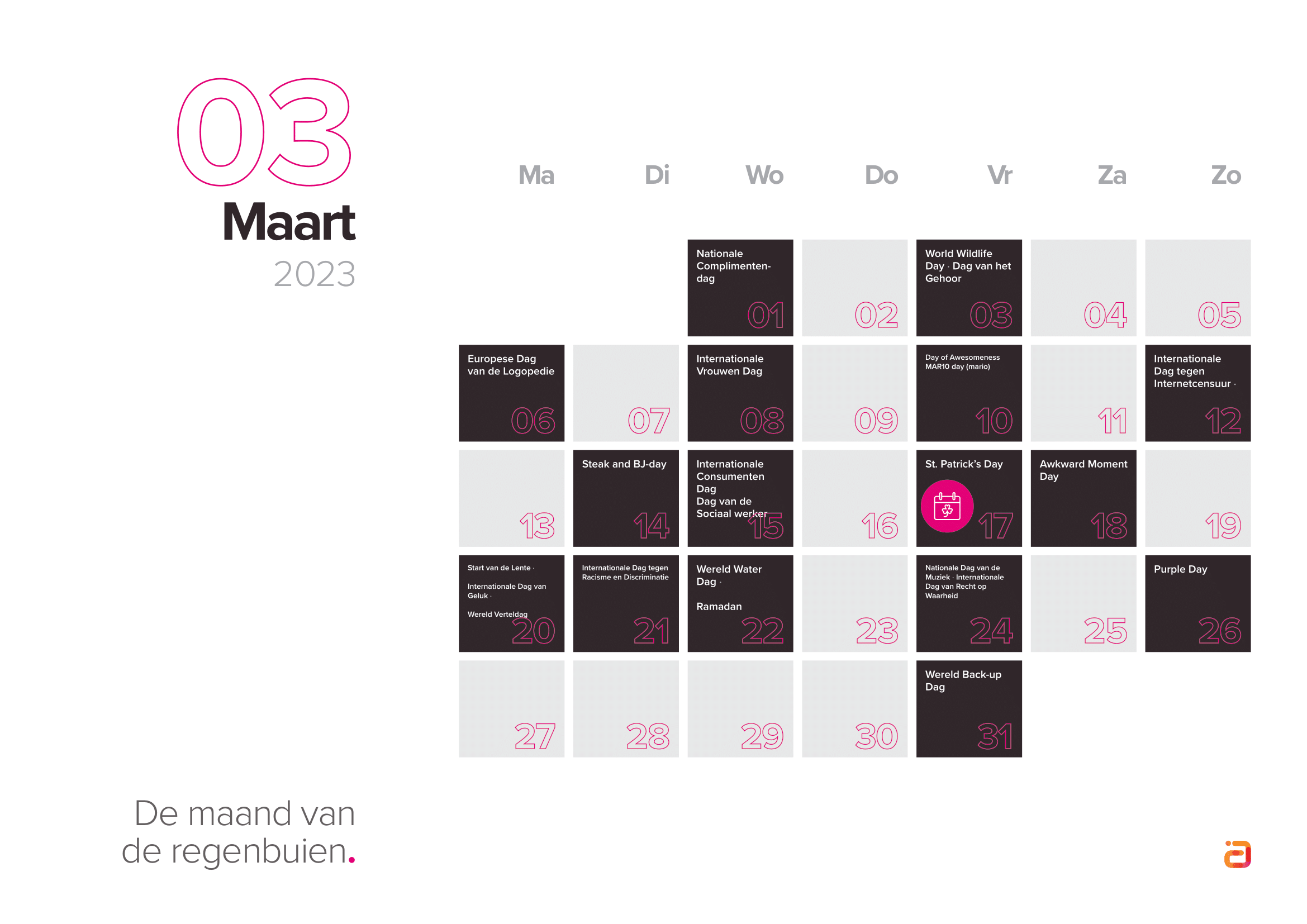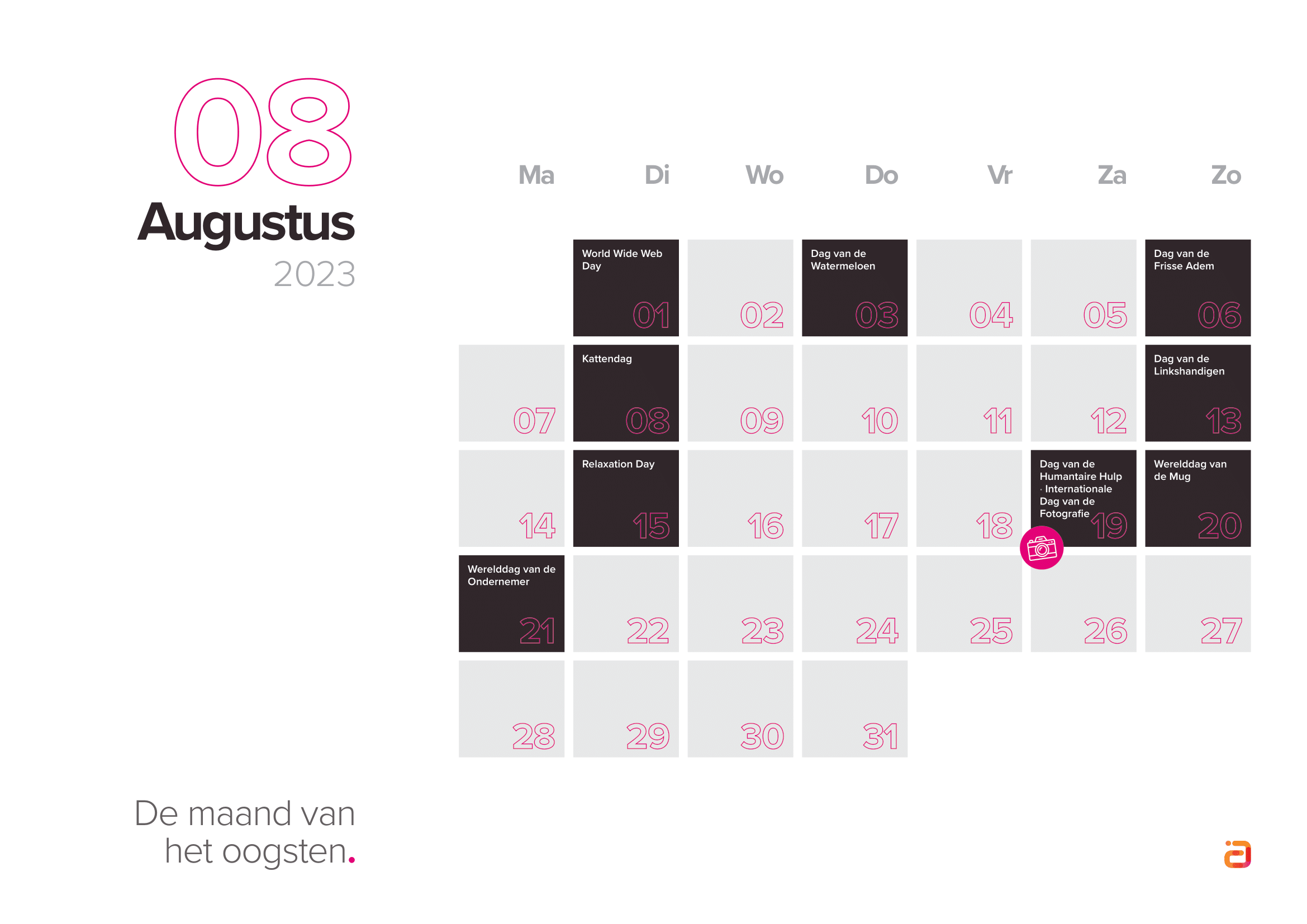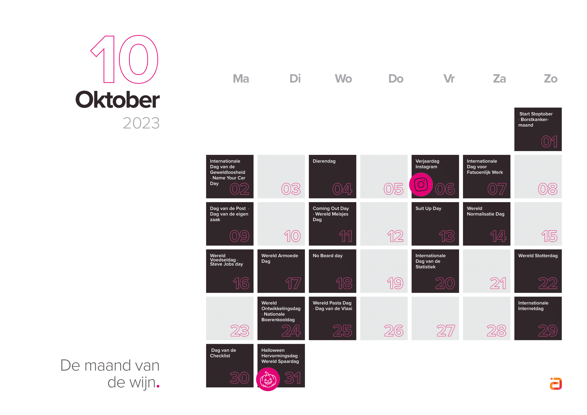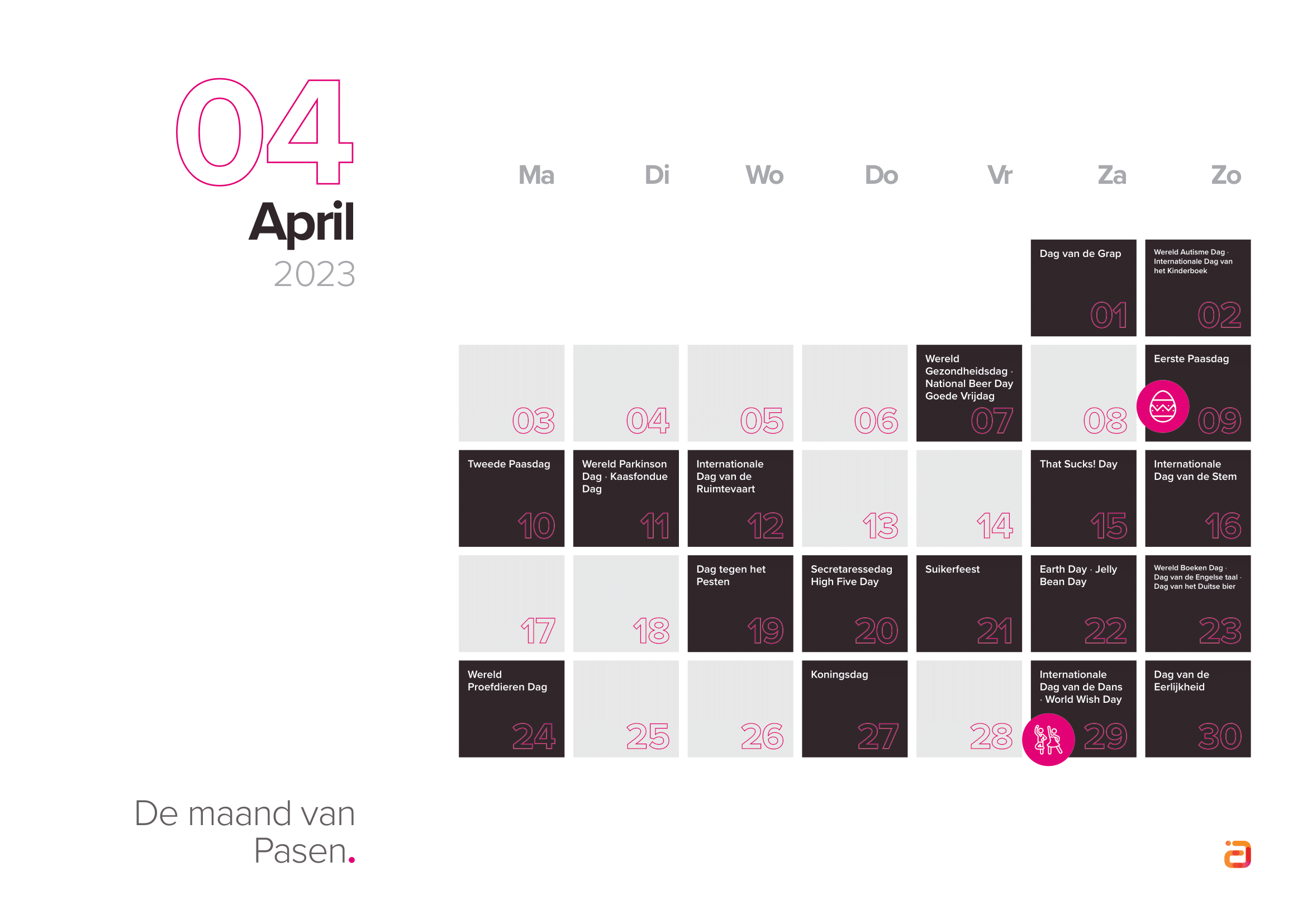 Houd bij het kiezen van inhakers rekening met je doelgroep en wat zij belangrijk vinden. Selecteer dus de inhakers die aansluiten op jouw merk en je doelgroep. Bekijk de inhaakkalender 2023 hieronder, of download de kalender direct.
