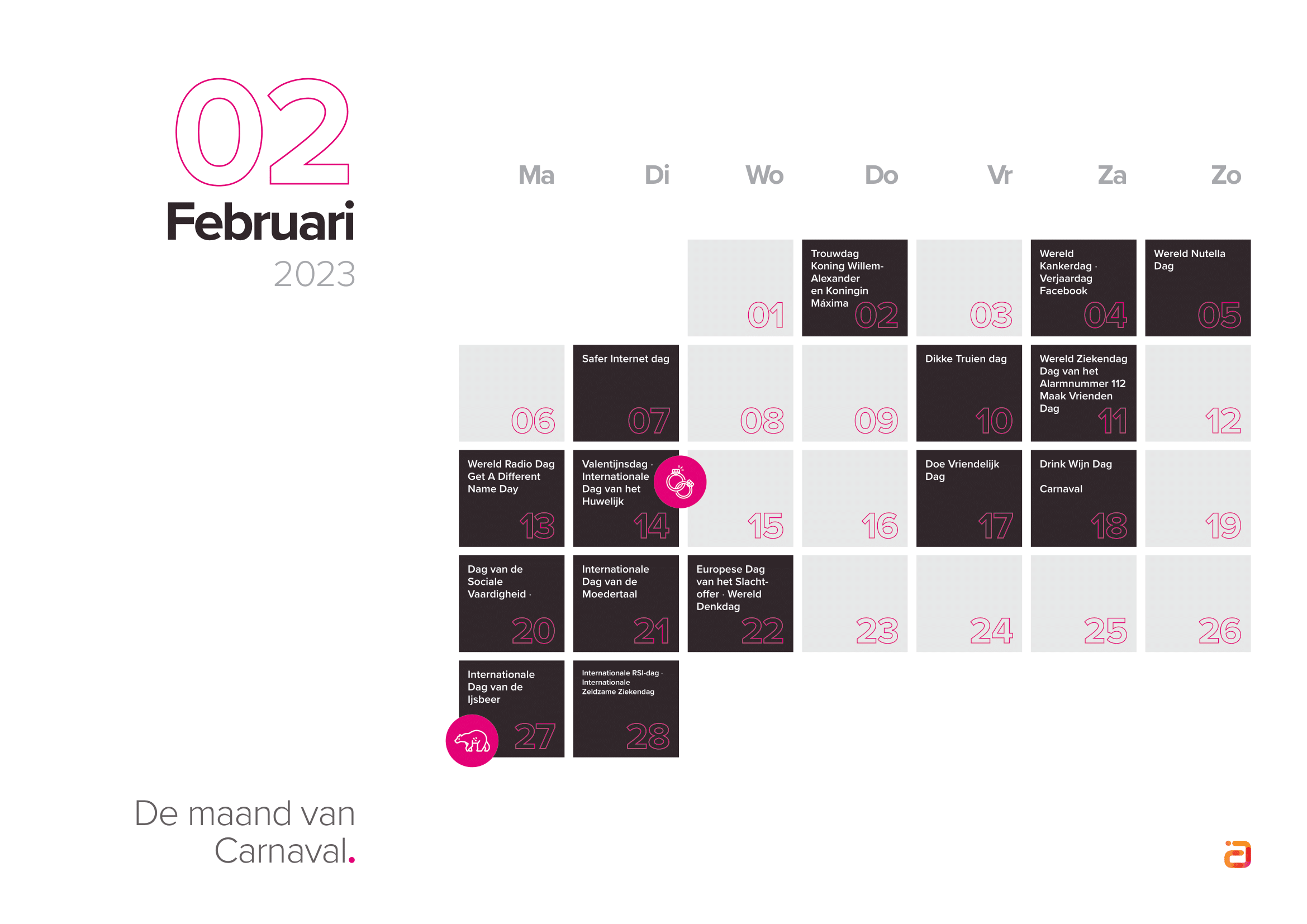 Het einde van het jaar nadert en dus wordt het tijd om je contentstrategie voor 2023 klaar te maken. En die is niet compleet zonder inhakers om met je content op in te spelen. Met de Adwise inhaakkalender 2023 heb je alle feestdagen, themadagen en belangrijke data van komend jaar bij de hand met één handig overzicht.