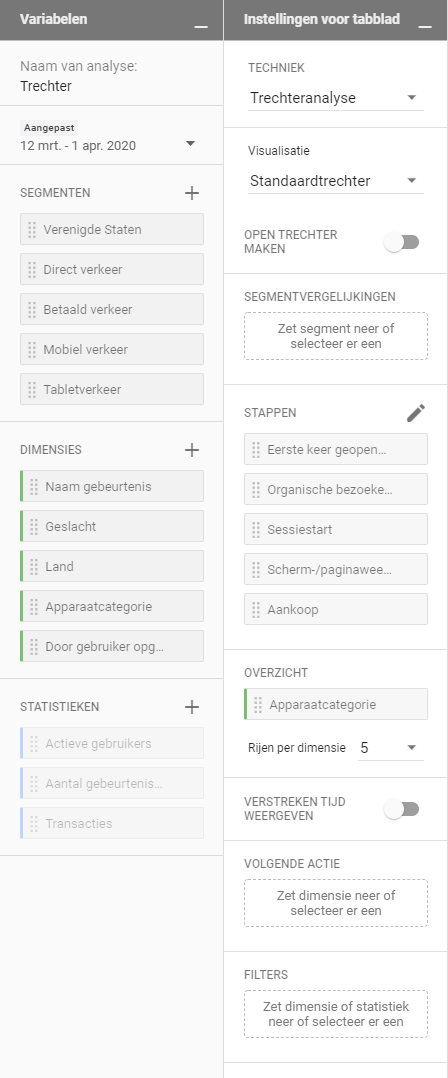 Binnen deze rapportage kunnen stappen gevisualiseerd worden om een taak te voltooien en snel te zien waar mensen afhaken in het proces. Met deze informatie is het mogelijk om de website of app verder te optimaliseren.