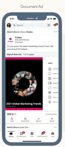 Documented ads, de nieuwste advertentievorm van LinkedIn is afgelopen maand beschikbaar geworden. Ten eerste, wat is het? Met documented ads ben je als adverteerder in staat direct volledige documenten te promoten in de feed. Denk hierbij aan een pdf-bestand, slide show of volledige casestudies. Met document ads kan je gemakkelijk content delen om awareness te creëer of jezelf als autoriteit binnen de branche te positioneren. Het voordeel van documented ads is dat de gebruiker niet het platform hoeft te verlaten. Hierdoor blijft de gebruikerservaring optimaal en zal je minder afvallers hebben ten opzichte van de klik en weergave landingspagina bij een ‘verkeerscampagne’..