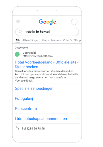 Het belang van extensies is eigenlijk tweevoudig. Naast het feit dat extensies er voor zorgen dat je advertenties een groter deel van de zoekresultatenpagina ‘opeist’, heeft het ook nog impact op je Ad Rank. Door het toevoegen van extensies stimuleer je nl. mensen om te klikken en verhoog je de verwachte CTR.
