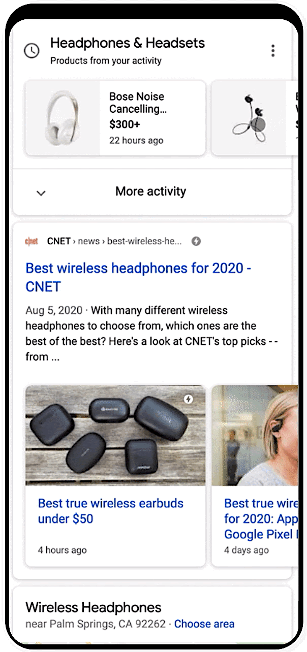 Winkel activiteitenkaart: Google Zoeken toont de producten die een gebruiker heeft onderzocht, zelfs als het product werd genoemd in een artikel dat de gebruiker heeft gelezen.