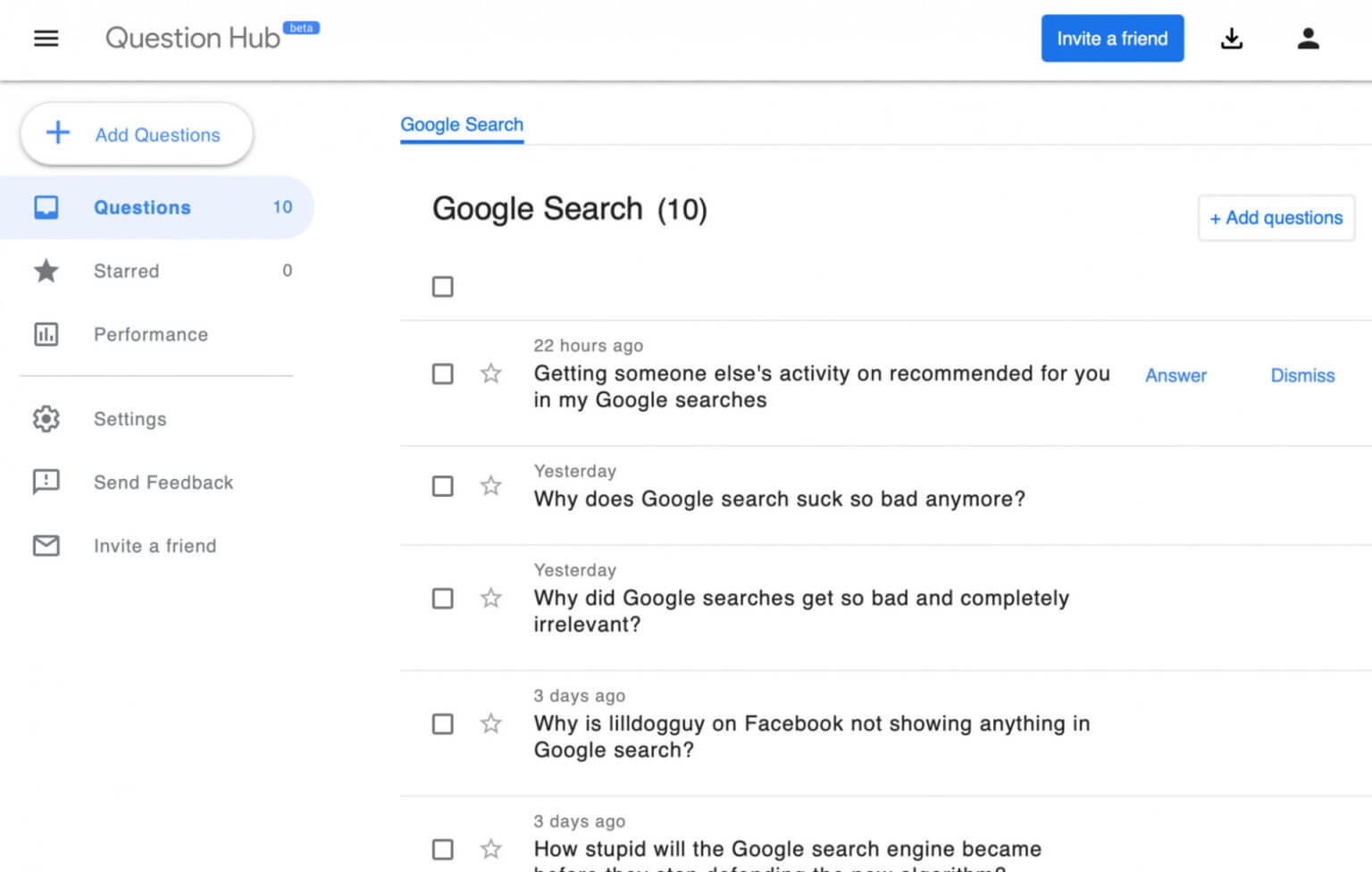 Google Question Hub is in feite een manier voor uitgevers om te achterhalen welke vragen onbeantwoord blijven in Google Zoeken. Hier kan vervolgens content voor worden gemaakt die overeenkomen met die vragen. Het is in feite een manier voor uitgevers om te zien welke vragen onbeantwoord blijven in Google Zoeken en vervolgens inhoud te maken die overeenkomt met die vragen.