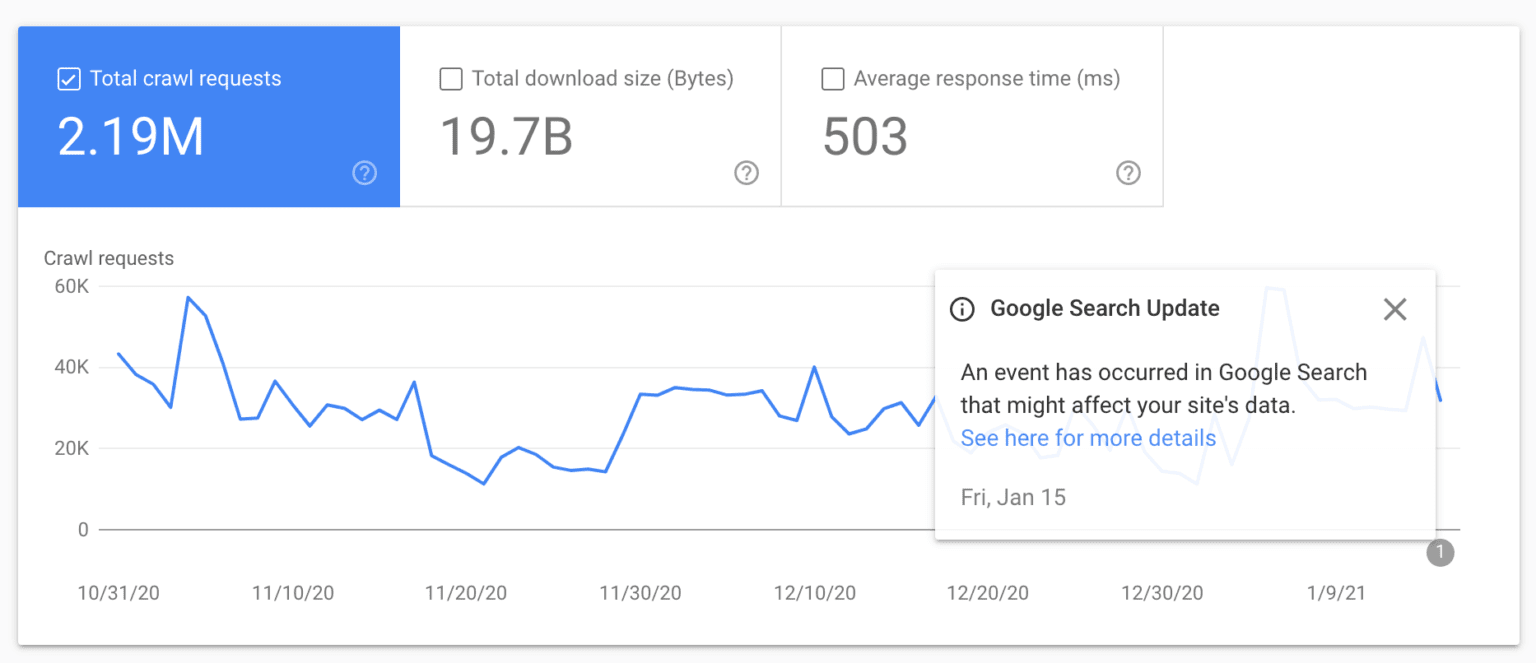Google lanceerde in november 2020 het nieuwe rapport met crawlstatistieken. Het rapport met crawlstatistieken toont de statistieken over de crawl geschiedenis van Google op jouw website.