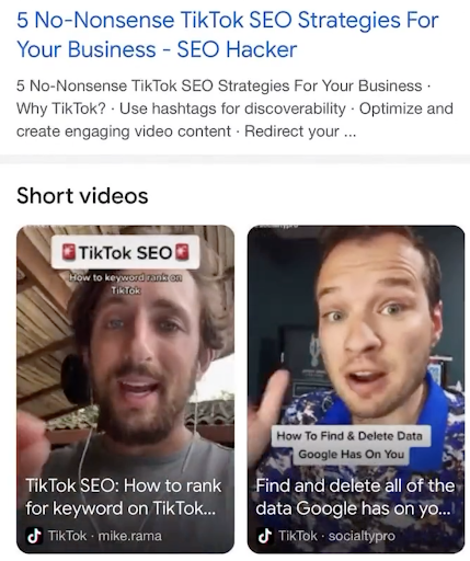 De groei van dit content type lijkt voor Google nu aanleiding om TikTok video’s rechtstreeks in de zoekresultaten te tonen. Dus ook voor zichtbaarheid in Google Search is TikTok nu een kanaal om rekening mee te houden.