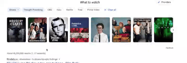Satyajeet Salgar, de Group Product Manager op de afdeling ‘Media and Entertainment’ van Google, heeft laten weten op Twitter dat er een nieuwe functie wordt geïntroduceerd. Deze functie betreft de featured snippet voor film en tv-resultaten. Wanneer je met je cursor over een suggestie zweeft dan laat die meer informatie zien door middel van een animatie over het desbetreffende resultaat.