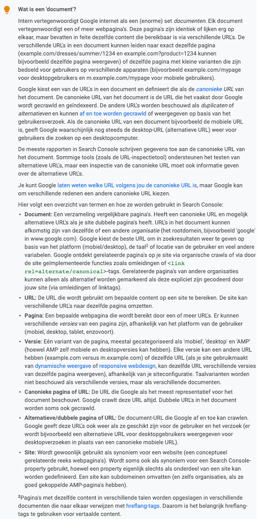 Ten slotte heeft Google nog een volledig sectie toegevoegd over "Wat is een document."