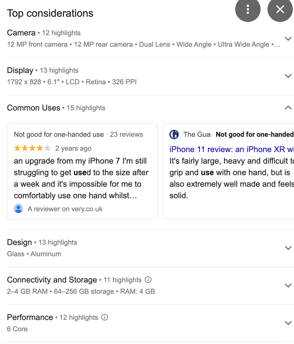 Google laat ook review video's zien zodat je alle informatie die je wilt weten over het product op 1 pagina kan vinden en niet verschillende sites aan te klikken. Google test of deze nieuwe interface goed werkt. Op dit moment is het nog niet in Nederland maar wordt dit getest in Amerika.