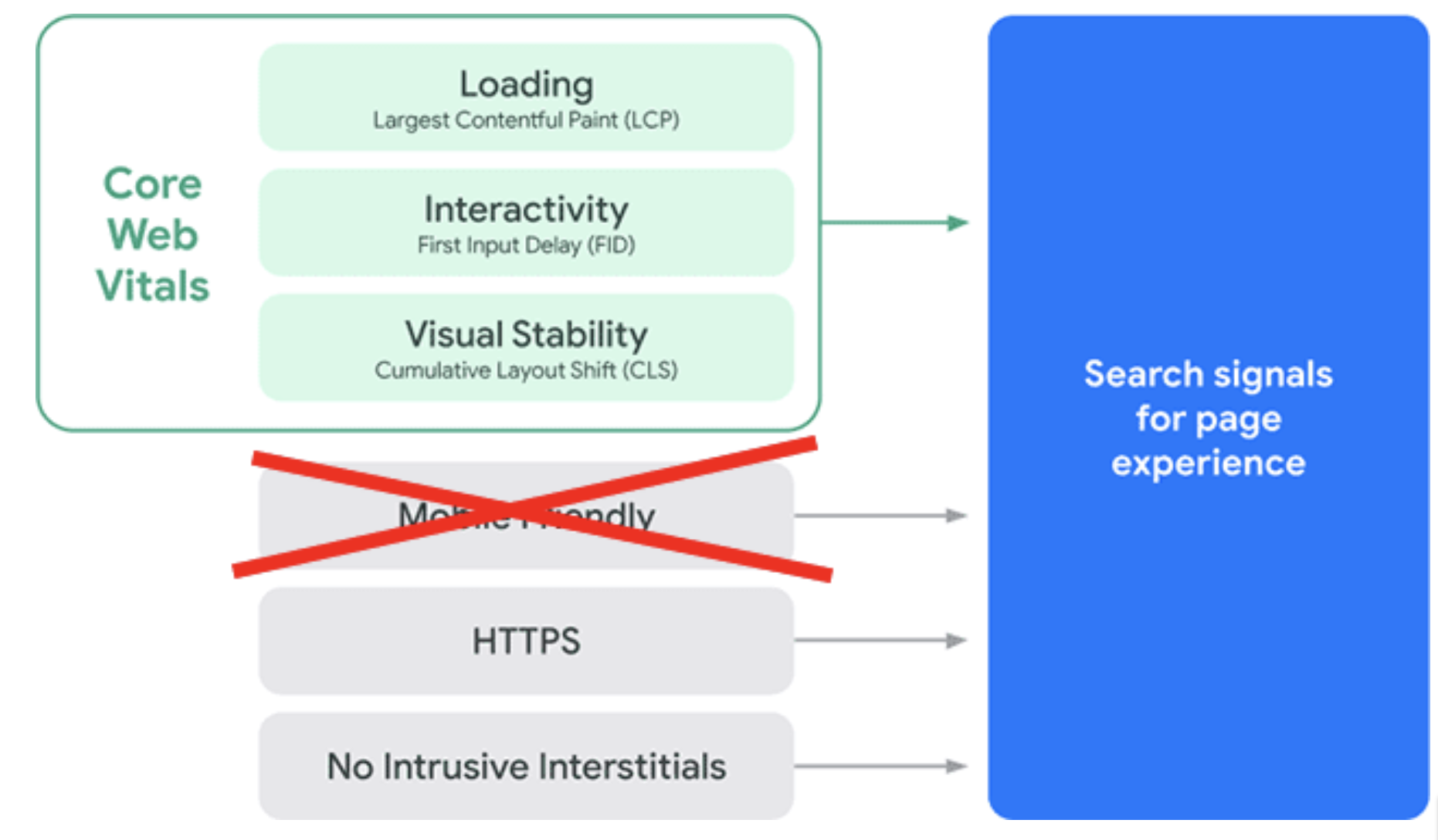 Ter herinnering, de page experience update houdt niet langer rekening met veilig browsen. Dus voor mobiel ziet het er zo uit: