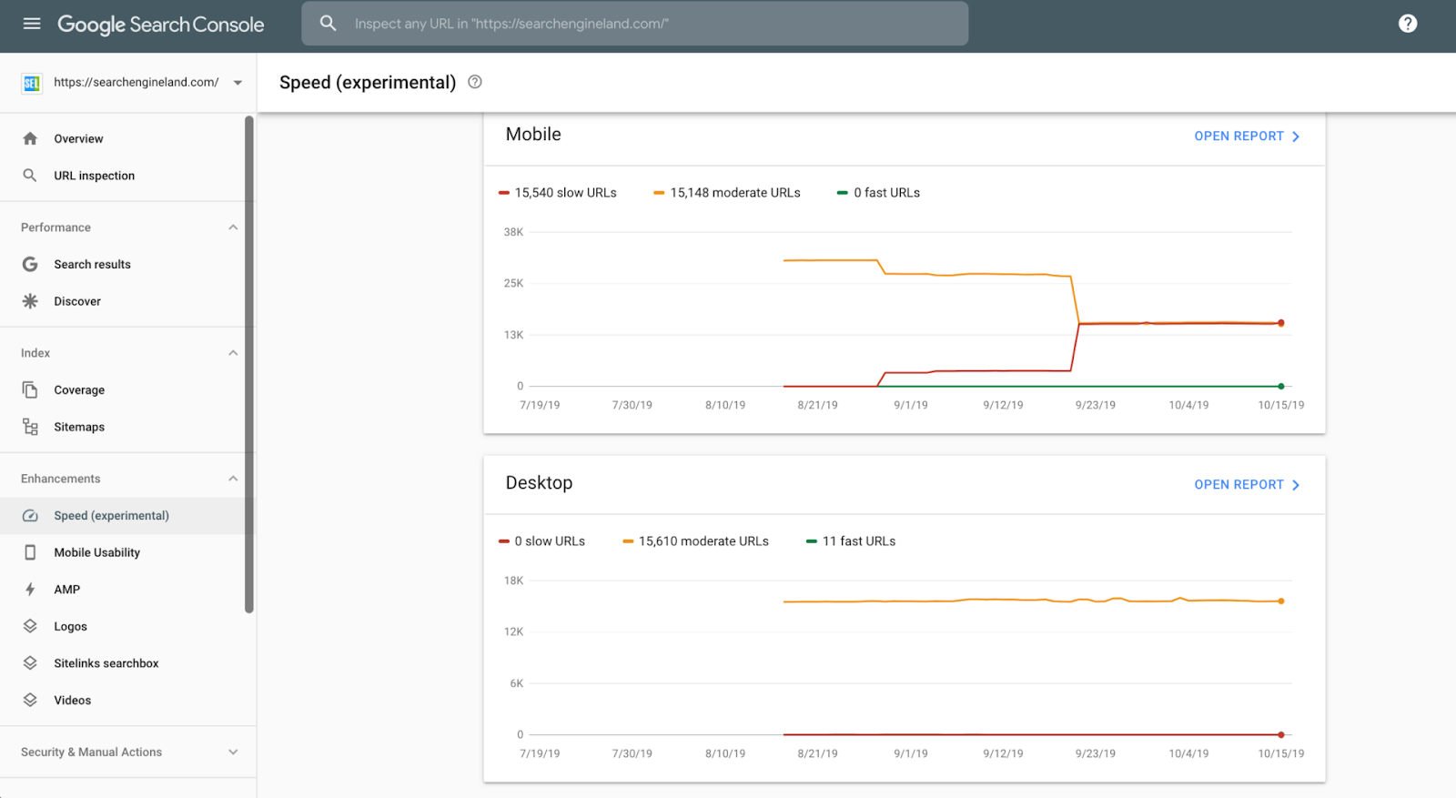 Op dit moment is Google aan het testen met een nieuw rapport over de website snelheid in Google Search Console. Snelheid is natuurlijk een belangrijke factor voor je positie in de zoekmachine. In onze SEO Roundup van mei heb je al kunnen lezen dat deze nieuwe functionaliteit werd bekend gemaakt tijdens Google I/O. Inmiddels is Google aan het testen met een aantal accounts die toegang hebben tot deze feature en deze informatie delen we graag met jullie. Het rapport is op dit moment in de testversie beschikbaar onder de tab ‘Enhancements’ oftewel optimalisaties. (zie onderstaande afbeelding).