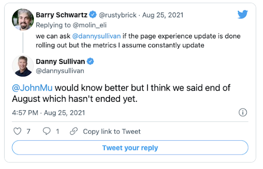 Google schreef "De uitrol van de pagina-ervaring is nu voltooid, inclusief updates voor de mobiele carrousel van Top Stories. Veranderingen in Google Nieuws app zijn ook begonnen met uitrollen en zullen over een week of zo compleet zijn."