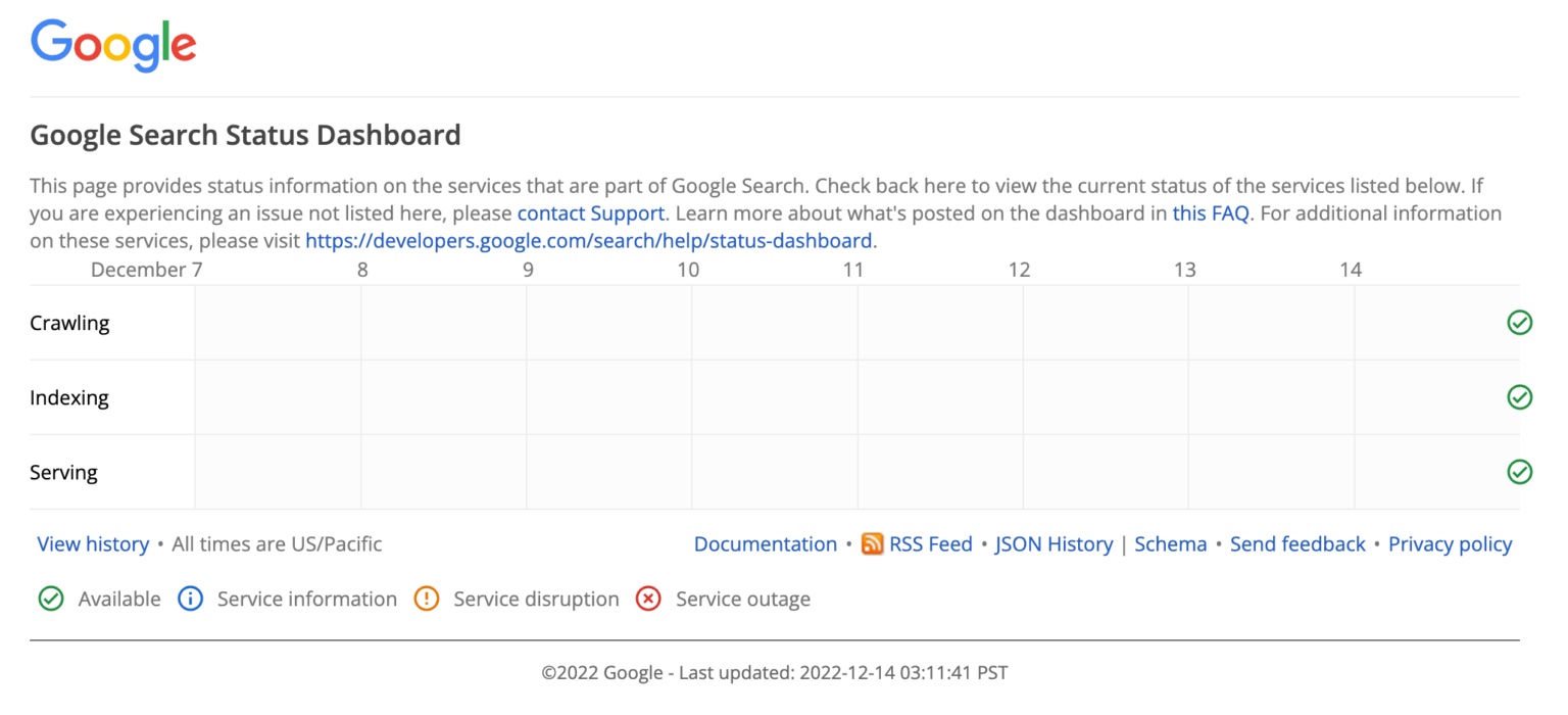Afbeelding: Google Search status dashboard