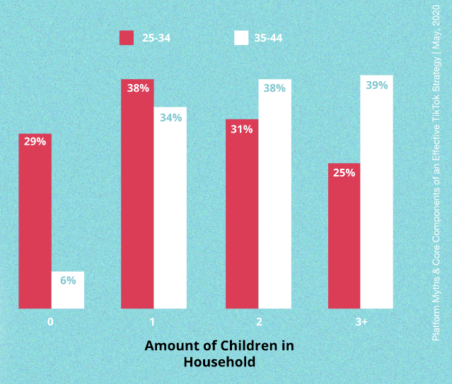 Veel merken zien het platform vanwege de aanwezigheid van een vooral jongere doelgroep nog wel eens te snel over het hoofd. De algemene tendens is niet alleen dat het voor kinderen bestemd is, maar ook dat het een rage zou zijn en dat dit snel weer zal bekoelen. Maar wist je dat Facebook, Instagram en zelfs het internet ook ooit als een rage werd gezien? Uiteindelijk zijn ook deze ontwikkelingen en apps een vast onderdeel van ons leven geworden. Wanneer je kijkt naar de ontwikkelingen kan hetzelfde gebeuren met TikTok. En terugkomend op de leeftijd: steeds meer celebrities en influencers weten de app te vinden, met als gevolg dat naast generatie Z ook de millennials zich langzaam verplaatsen naar TikTok. En wist je dat er ook een verband is tussen 24+ gebruikers en het aantal kinderen in het huishouden? Het hebben van kinderen is dus ook van invloed op TikTok gebruik!