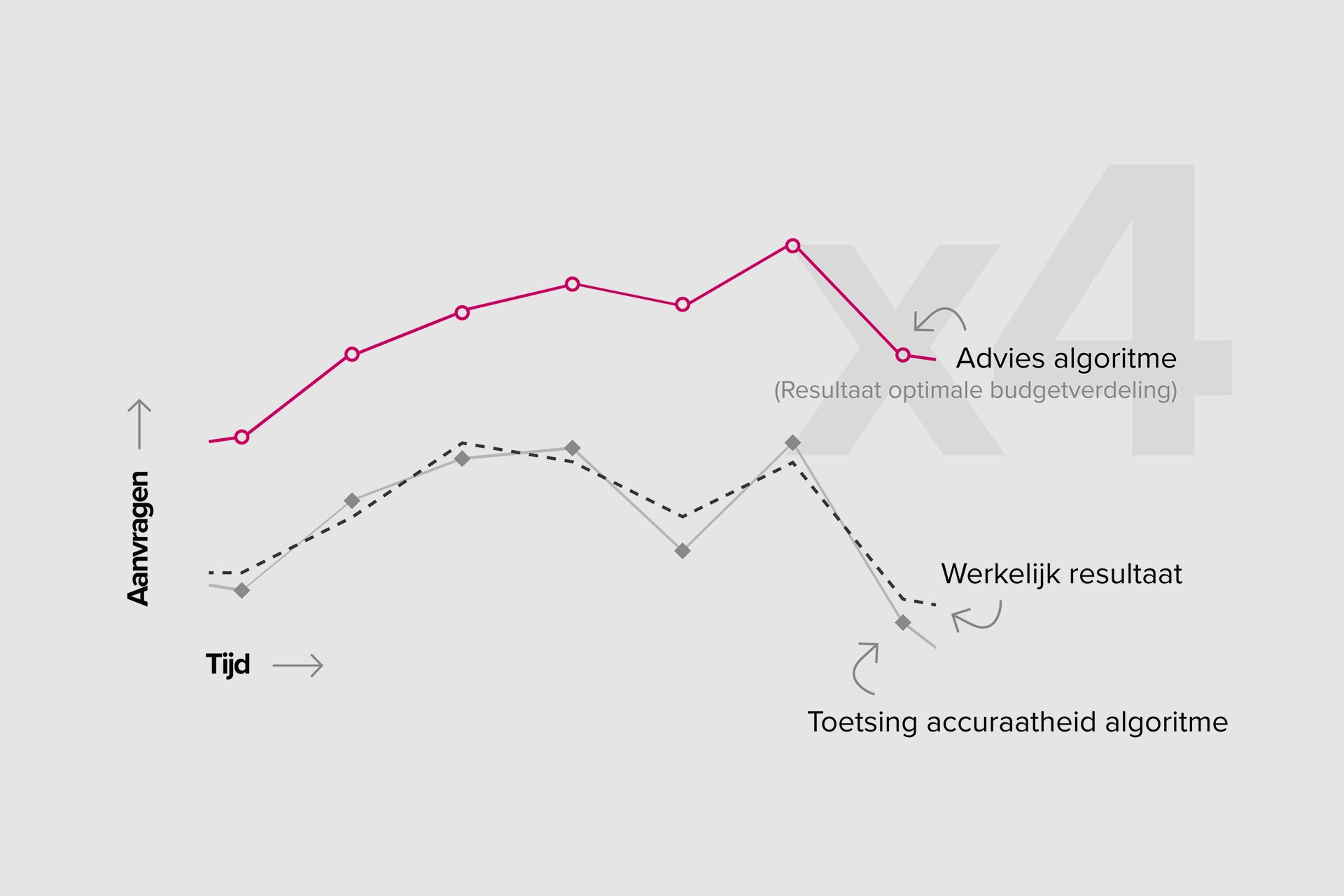 Belangrijk onderdeel van dit project is het bepalen van het echte effect van radio en TV. We willen niet alleen advies geven over de ideale middelenmix, maar ook op zenderniveau willen we kunnen optimaliseren. Door historische data goed te analyseren, is het ons gelukt om de effectiviteit van radio en tv in te schatten. Adwise is zelfs een stap verder gegaan. Door historische data van offline media én door alle beïnvloeden op het effect van de offline media resultaten te analyseren, kunnen we niet alleen de ideale marketing mix bepalen maar de verwachte resultaten voorspellen. Dit algoritme is vervolgens uitgewerkt zodat we het algoritme voor zowel online- als offline media kunnen inzetten. De uitkomsten worden helder weergegeven in het “Marketing Spend Optimalisatie Tool” van Qredits. Dit is een tool waar Qredits een aantal variabelen kan ingeven zoals budget, type campagne (conversie gericht of brand awaraness), kanalen en zenders. Op basis van de ingevoerde variabelen wordt de ideale mix getoond en het verwacht resultaat voorspeld.
